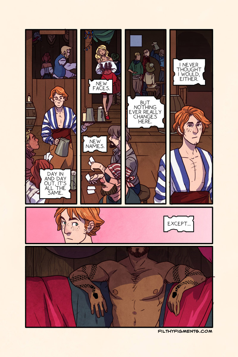 Life is dull and droll for serving boy Sebastian, who yearns for more excitement. When a pirate ship docks to resupply and his path crosses with the ships enticing First Mate, Sebastian finds there's more to life than his sleepy port town.
