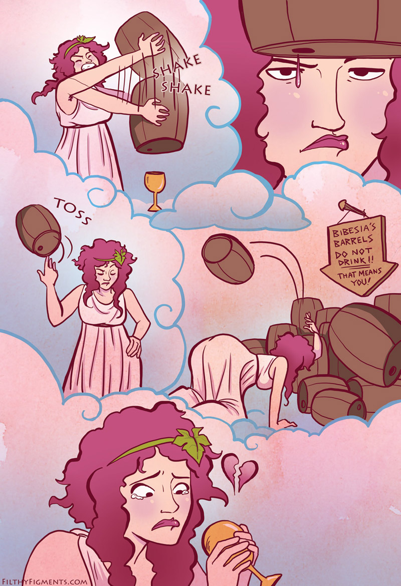 Bibesia, the ancient Roman goddess of drink, has run out of wine! She has journeyed to Earth in search of some smooth, supple spirits to refill her barrels, but she finds she has been intoxicated by something --or someBODY-- else completely.