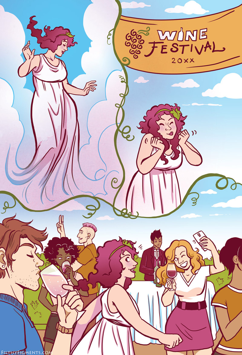 Bibesia, the ancient Roman goddess of drink, has run out of wine! She has journeyed to Earth in search of some smooth, supple spirits to refill her barrels, but she finds she has been intoxicated by something --or someBODY-- else completely.