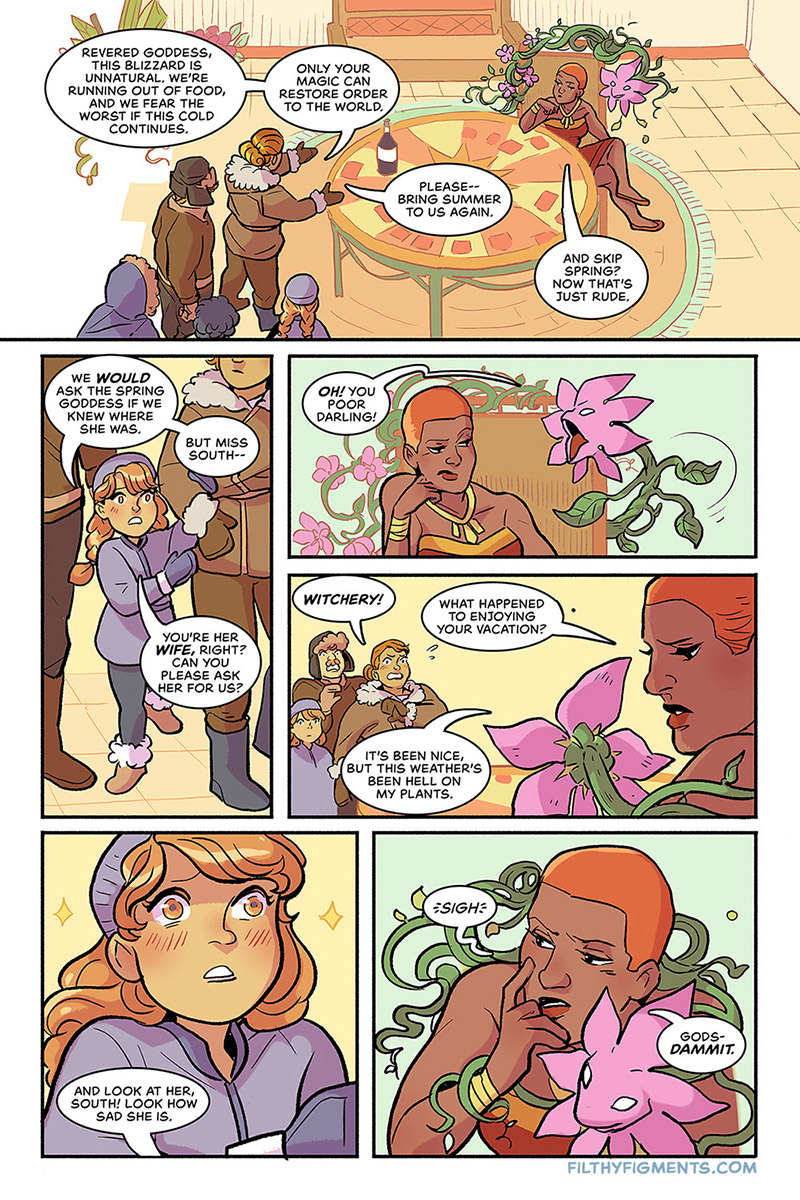 The compass gods control nature itself, but that doesn’t necessarily mean any of them are more mature than the average bickering couple. When North and West have yet another marital spat, the girls must work together to convince North he can, indeed, wow his husband back with the Power of Good Sex. Seeing as winter won’t end until North and West get back together, the whole world is quite literally depending on the girls to teach North a lesson in loving.